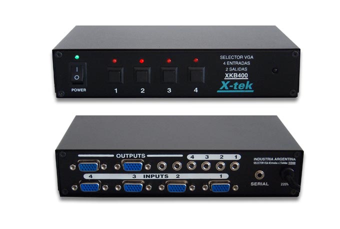 XKB400 Switch 4x1 con 2 salidas de VGA + Audio Estéreo Controlable por IR y RS232.